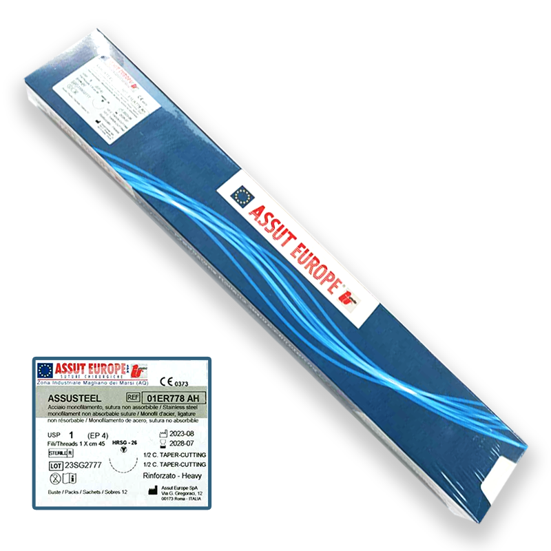 Ассустил (Assusteel) — нить синтетическая, монофиламентная, не рассасывающаяся. Шовный материал изготовлен из сплава металла из стали, никеля и хрома. Цвет — серебряный. Рекомендации — для закрытия брюшной полости, грудины, кожи; удержание и восстановление сухожилия; в ортопедии и нейрохирургии; в общей и пластической хирургии. Производитель: ASSUT Europe.