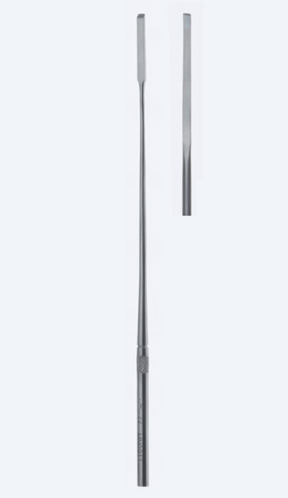 Долото – это хирургический медицинский инструмент, используемый для трепанации костей и удаления новообразований на костной ткани. Также используется при обработке ран для отсечения загрязненных участков. Для работы с инструментом дополнительно используются металлические или деревянные медицинские молотки, благодаря которым наносится удар по долоту. Долото характеризуется не только особой формой, но и высокой прочностью, значительным весом и лезвием, сохраняющим режущие свойство после длительных манипуляций. Данный медицинский инструмент состоит из 4 частей: наковаленка, рукоятка, лезвие, режущая кромка. Лезвие долота всегда плоское и желобоватое, может быть прямым или изогнутым. Рукоятки изготавливаются из того же материала, что и сам инструмент, имеют круглую, квадратную, шестигранную форму, обеспечивая минимальное скольжение в руки во время ударов молотком по костной ткани. Долото широко используется в хирургических целях для рассечения кости и удаления новообразований на них.