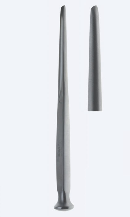 Долото – это хирургический медицинский инструмент, используемый для трепанации костей и удаления новообразований на костной ткани. Также используется при обработке ран для отсечения загрязненных участков. Для работы с инструментом дополнительно используются металлические или деревянные медицинские молотки, благодаря которым наносится удар по долоту. Долото характеризуется не только особой формой, но и высокой прочностью, значительным весом и лезвием, сохраняющим режущие свойство после длительных манипуляций. Данный медицинский инструмент состоит из 4 частей: наковаленка, рукоятка, лезвие, режущая кромка. Лезвие долота всегда плоское и желобоватое, может быть прямым или изогнутым. Рукоятки изготавливаются из того же материала, что и сам инструмент, имеют круглую, квадратную, шестигранную форму, обеспечивая минимальное скольжение в руки во время ударов молотком по костной ткани. Долото широко используется в хирургических целях для рассечения кости и удаления новообразований на них.