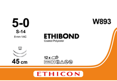 Этибонд Эксель (Ethibond Excel) полиэстер с покрытием из полибутилата. Нить изготовлена из плетеного полиэстера и имеет покрытие из полибутилата для минимального повреждения ткани при проведении нити, лучших манипуляционных свойств и надежной фиксации узлов.