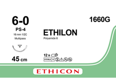 Этилон (Ethilon) 6/0, длина 45см, обр-реж. игла 16мм 1660G