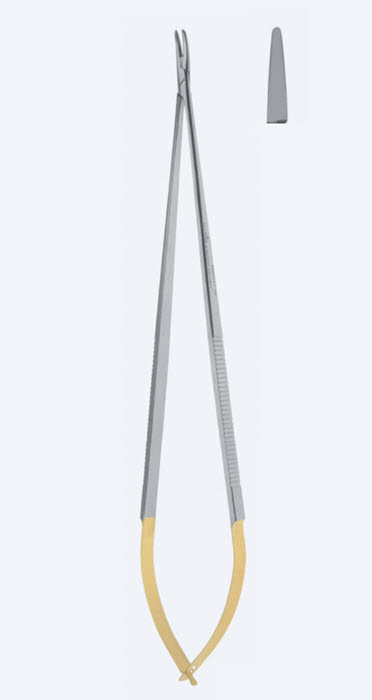 Иглодержатель "Power TC" Castroviejo, длина 220мм, прямой, гладкая рабочая поверхность, для ниток 5/0-7/0, без замка MN0036