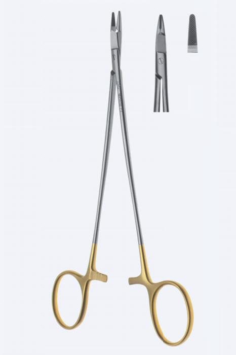 Иглодержатель — это хирургический инструмент, которым пользуются хирурги на завершающем этапе операции при сшивании шовным материалом краев рассечения, тканей, сухожилий, органов. Данный инструмент является одним из главных инструментариев в операционном наборе. На фиксирующих концах браншей, рабочей области держателя фиксируется хирургическая игла, для проведения манипуляций. В зависимости от размера иглы и предстоящей операции, используют различные виды иглодержателей, с разными насечками, тщательно подбирается длина иглодержателя и по какому автору он сделан. Главным образом используют его, чтобы исключить соприкосновение рук с тканями при сшивании.