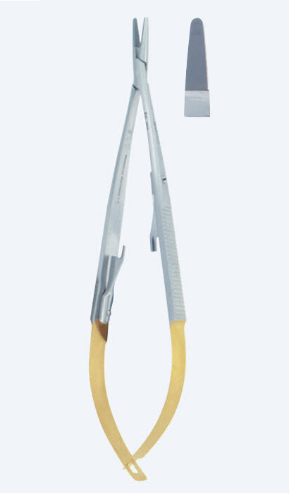 Иглодержатель микро "Power TC" Topas-Castroviejo, длина 220мм, прямой, зазубренная рабочая поверхность, сечение 0,4, для ниток 5/0-6/0, без замка NHB4745