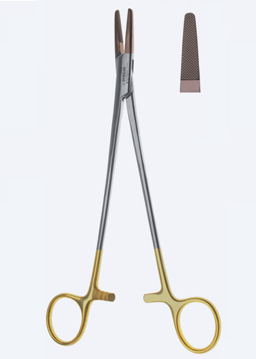 Иглодержатель — это хирургический инструмент, которым пользуются хирурги на завершающем этапе операции при сшивании шовным материалом краев рассечения, тканей, сухожилий, органов. Данный инструмент является одним из главных инструментариев в операционном наборе. На фиксирующих концах браншей, рабочей области держателя фиксируется хирургическая игла, для проведения манипуляций. В зависимости от размера иглы и предстоящей операции, используют различные виды иглодержателей, с разными насечками, тщательно подбирается длина иглодержателя и по какому автору он сделан. Главным образом используют его, чтобы исключить соприкосновение рук с тканями при сшивании.