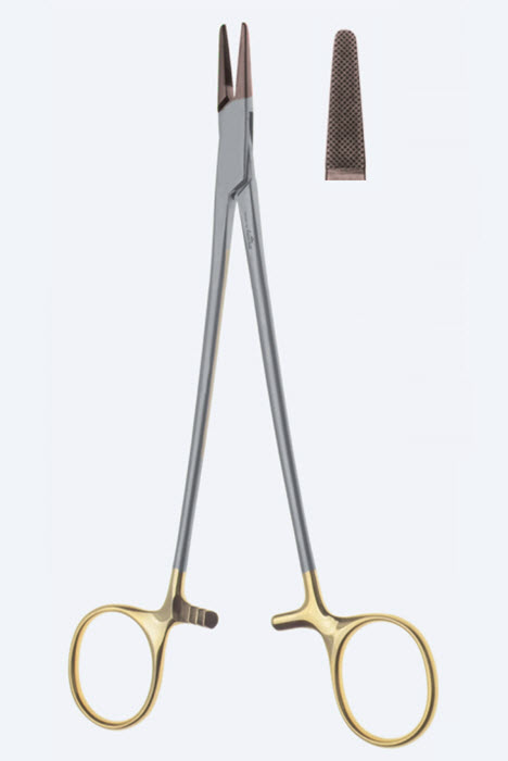 Иглодержатель — это хирургический инструмент, которым пользуются хирурги на завершающем этапе операции при сшивании шовным материалом краев рассечения, тканей, сухожилий, органов. Данный инструмент является одним из главных инструментариев в операционном наборе. На фиксирующих концах браншей, рабочей области держателя фиксируется хирургическая игла, для проведения манипуляций. В зависимости от размера иглы и предстоящей операции, используют различные виды иглодержателей, с разными насечками, тщательно подбирается длина иглодержателя и по какому автору он сделан. Главным образом используют его, чтобы исключить соприкосновение рук с тканями при сшивании.