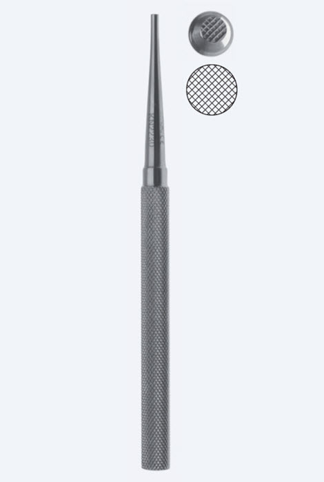 Импактор используется для уплотнения костного или трансплантационного материала во время процедур в ортопедической и костной хирургии. Инструмент доступен в различных диаметрах наконечника от 2,0мм до 16,0мм и крестообразно зазубрен. Костный импактор может иметь различные ручки.