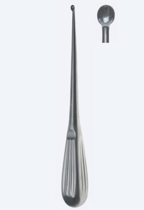 Кюретка – это медицинский хирургический инструмент, который используется в некоторых областях хирургии для удаления, выскабливания мягких тканей из костей, при удалении нагноений, прочие. Хирургическую ложку различают по форме, диаметру рабочей области, длине, количеству сторон. Общая классификация делит кюретки на односторонние, двусторонние, гинекологические. В хирургии кюретки (ложки) костные используются при лечении остеомиелита, для выскабливания костных полостей после секвестрэктомии или при травмах костей и удаление патологической грануляционной и костной тканей.