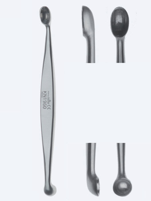 Кюретка – это медицинский хирургический инструмент, который используется в некоторых областях хирургии для удаления, выскабливания мягких тканей из костей, при удалении нагноений, прочие. Хирургическую ложку различают по форме, диаметру рабочей области, длине, количеству сторон. Общая классификация делит кюретки на односторонние, двусторонние, гинекологические. В хирургии кюретки (ложки) костные используются при лечении остеомиелита, для выскабливания костных полостей после секвестрэктомии или при травмах костей и удаление патологической грануляционной и костной тканей.