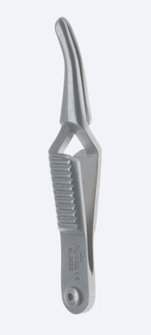 Клипса (зажим, клемма) типа бульдог Johns-Hopkins (Джонс-Хопкинс), длина 48мм, изогнутая, длина челюсти 17мм. Производитель: Asanus (Germany).