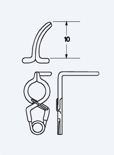Клипса сосудистая временная Yasargil, титановая, длина 10мм, изогнутая вправо под углом 90°, максимальное открытие 5,8мм, сила давления 110г / 1,08N YA0561T