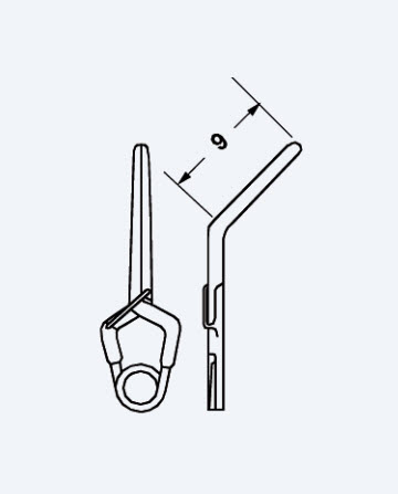 Клипса сосудистая временная Yasargil, титановая, длина 9мм, изогнутая под углом 45°, максимальное открытие 7,8мм, сила давления 110г / 1,08N YA1025T