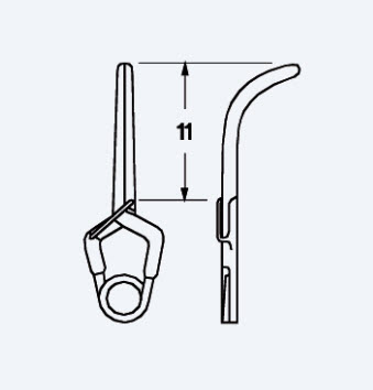 Клипса сосудистая временная Yasargil, титановая, длина 11мм, сильно изогнутая, максимальное открытие 6,5мм, сила давления 110г / 1,08N YA1200T