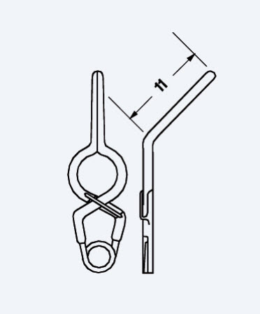 Клипса сосудистая временная Yasargil, длина 11мм, изогнутая под углом 45°, максимальное открытие 7,8мм, сила давления 110г / 1,08N YA0236