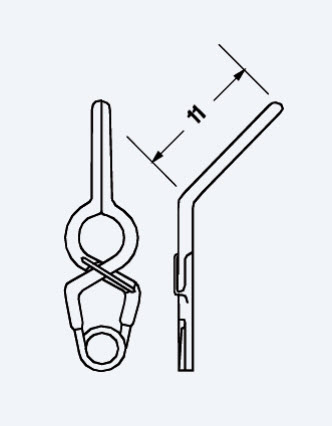 Клипса сосудистая временная Yasargil, длина 11мм, изогнутая под углом 45°, максимальное открытие 7,2мм, сила давления 110г / 1,08N YA1024