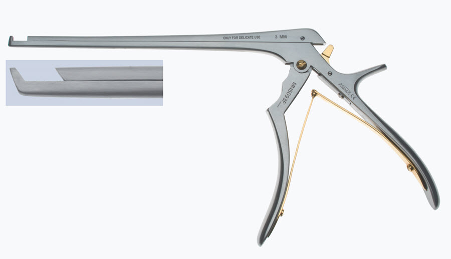 Костный выкусыватель (панч, пуансон, кусачки) Kerrison (Керрисон) "Easy Line", рабочая длина 250мм, режущий вверх на 130°, выкус 1,0мм, концентратор 10мм, тонкая опорная поверхность, разборный. Производитель: Asanus (Germany).