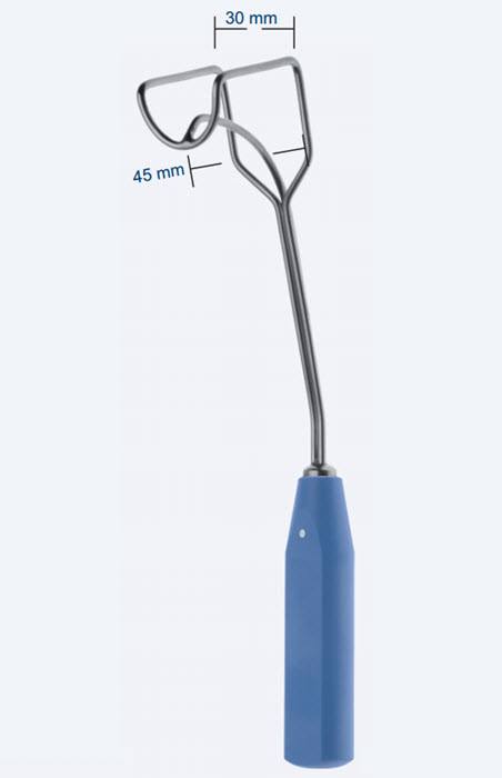 Крючок для предсердия (атриума) Cooley (Кули), длина 265мм, размер 45х30мм, правый, зазубренный. Производитель: Asanus (Germany).