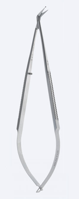 Микроножницы коронарные, плоская ручка, длина 205мм, закругленные по ребру 180°, остроконечные с шаровидным наконечником, длина лезвия 10,0мм. Производитель: Asanus (Germany).