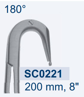Микроножницы коронарные, длина 205мм, закругленные по ребру 180°, остроконечные, с шаровидным наконечником, длина лезвия 10,0мм SC0221