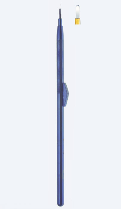 Нож алмазный для микрохирургии без граней, длина 200мм, прямой, лезвие круглое 1,0х0,17х6,0мм, односторонний, с безопасным механизмом GF5077