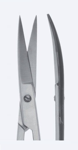 Хирургические ножницы — это режущие инструменты, состоящие из двух лезвий, центрированных по центру. Лезвия закрываются и материал разрезается, при смыкании изогнутых колец на рукояти, куда вставляются пальцы. Ножницы являются незаменимыми инструментами при провидении любой операции, а также, снятия повязки, снятие швов, гипса. В режущей ткани предпочтительным методом является удерживание лопастей в плотно закрытом положении и подталкивание инструмента вдоль ткани. Деликатные ножницы используют хирурги при проведении операции, когда нужно проделать точную и тонкую диссекцию на мягких тканях или сосудах. Ножницы для пластической хирургии используются при проведении деликатных и тонких операций на лице человека.