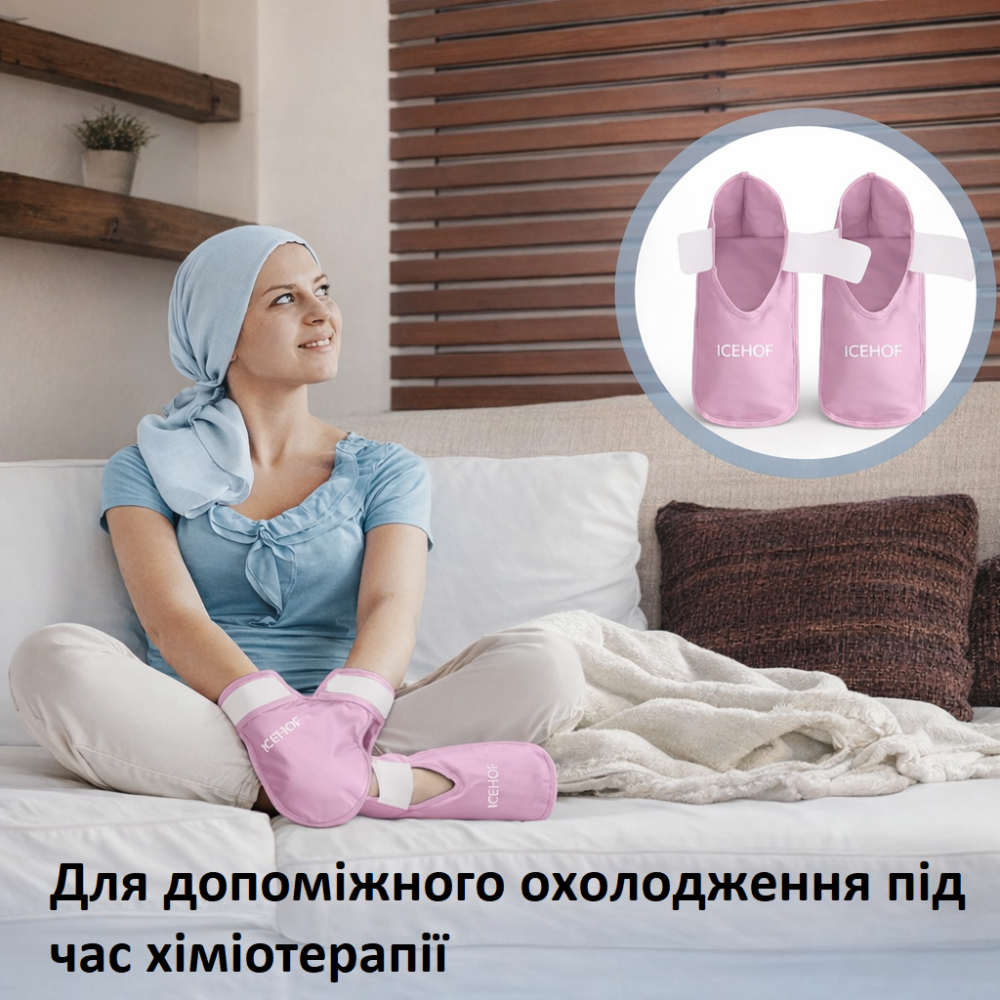 Перчатки ICEHOF рекомендованы во время химиотерапии для профилактики поражений ногтей и кожи, снижения токсических реакций, пузырей, воспалений и боли. Они помогают уменьшить дискомфорт и предотвратить преждевременное прекращение лечения.
