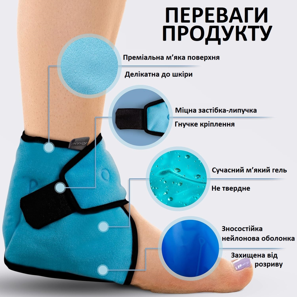 ICEHOF Cooling Pads — это охлаждающий гелевый бандаж для голеностопного сустава, предназначенный для быстрого облегчения боли, уменьшения воспаления и снятия отёков. Идеально подходит после физических нагрузок, длительного стояния, травм или медицинских процедур.