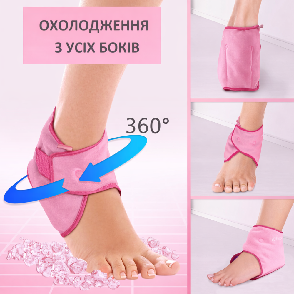 Охлаждающий бандаж для голеностопного сустава с гелем, розовый, 1 шт. (B0D33GQ457)
