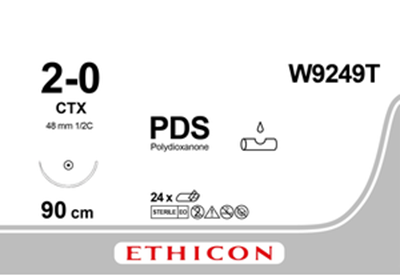 Рассасывающийся шовный материал ПДС II (PDS II) 2/0, длина 90см, кол. игла 48мм, 1/2 окр., фиолетовая нить. Монофиламентная рассасывающая синтетическая нить с максимальным сроком сохранения прочности. Производитель: ETHICON part of the JOHNSON&JOHNSON family of companies.