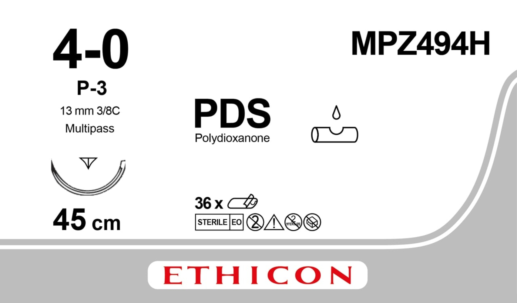 ПДС II (PDS II) 4/0, длина 45см, обр-реж. игла 13мм MPZ494H