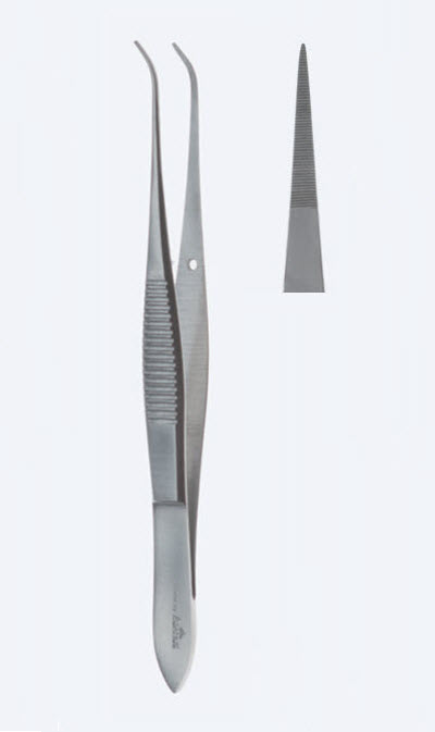 Пинцет анатомический для осколков, плоская ручка, длина 90мм, прямой, кончик 0,5мм, зубчатый. Производитель: Asanus (Germany).