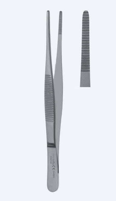 Пинцет анатомический для ткани, длина 150мм, прямой, кончик 2,2мм, зубчатый PZ0145
