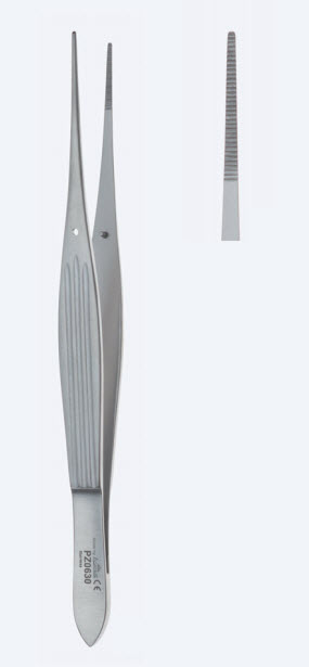 Пинцет анатомический McIndoe, длина 150мм, прямой, кончик 0,8мм, зубчатый PZ0630