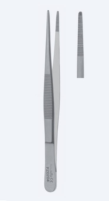 Пинцет анатомический, стандартный, длина 105мм, прямой, кончик 1,0мм, зубчатый PZ0201