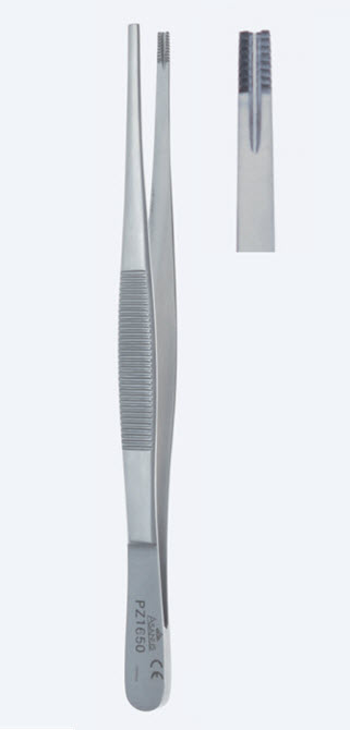 Пинцет медицинский — является одним из основных предметов медицинского инструментария, необходимого для оснащения лечебного учреждения любой сферы деятельности (хирургия, микрохирургия, стоматология, гинекология, урология, косметология, ветеринария). Пинцеты, в зависимости от операции хирургического вмешательства, могут очень отличаться по своему виду: быть изогнутыми, прямыми, зауженными, иметь фиксатор, быть без насечек на кончиках браншей. Однако принцип действия остается неизменным: пинцет позволяет захватывать или удерживать любые предметы и частички — медицинские инструменты, иглы, лигатуры, тампоны, ткани организма, сухожилия, кожу и фасции. Данное изделие делает возможным сохранение стерильности операционных инструментов и материалов, а также стерильность оперируемых полостей и покровов. Как правило, применяются при наложении швов. Поперечные волнистые выпуклости на браншах инструмента, позволяют крепко удерживать хирургом инструмент. Пинцет хирургический используется во время операции для надежной фиксации и удерживания плотных тканей.