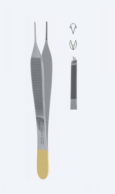 Пинцет хирургический "Power TC" Adson, длина 120мм, прямой, кончик 1,5мм, 1х2 зубчики PZ0385