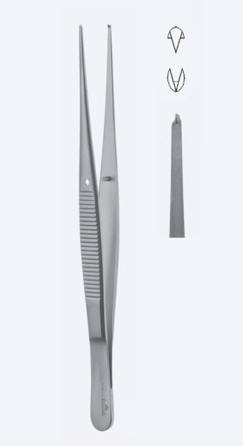 Пинцет хирургический Semken (Семкен), плоская ручка, длина 125мм, прямой, кончик 1,0мм, 1х2 зубчики. Производитель: Asanus (Germany).