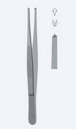 Пинцет хирургический, стандартный, плоская ручка, длина 300мм, прямой, кончик 4,0мм, 1х2 зубчики. Производитель: Asanus (Germany).