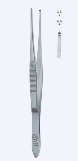 Пинцет медицинский — является одним из основных предметов медицинского инструментария, необходимого для оснащения лечебного учреждения любой сферы деятельности (хирургия, микрохирургия, стоматология, гинекология, урология, косметология, ветеринария). Пинцеты, в зависимости от операции хирургического вмешательства, могут очень отличаться по своему виду: быть изогнутыми, прямыми, зауженными, иметь фиксатор, быть без насечек на кончиках браншей. Однако принцип действия остается неизменным: пинцет позволяет захватывать или удерживать любые предметы и частички — медицинские инструменты, иглы, лигатуры, тампоны, ткани организма, сухожилия, кожу и фасции. Данное изделие делает возможным сохранение стерильности операционных инструментов и материалов, а также стерильность оперируемых полостей и покровов. Как правило, применяются при наложении швов. Поперечные волнистые выпуклости на браншах инструмента, позволяют крепко удерживать хирургом инструмент. Пинцет хирургический используется во время операции для надежной фиксации и удерживания плотных тканей.