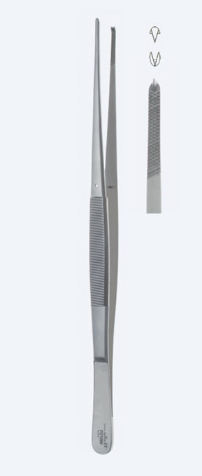 Пинцет хирургический Waugh, длина 305мм, прямой, кончик 2,6мм, 1х2 зубчики, крестообразный PZ1600