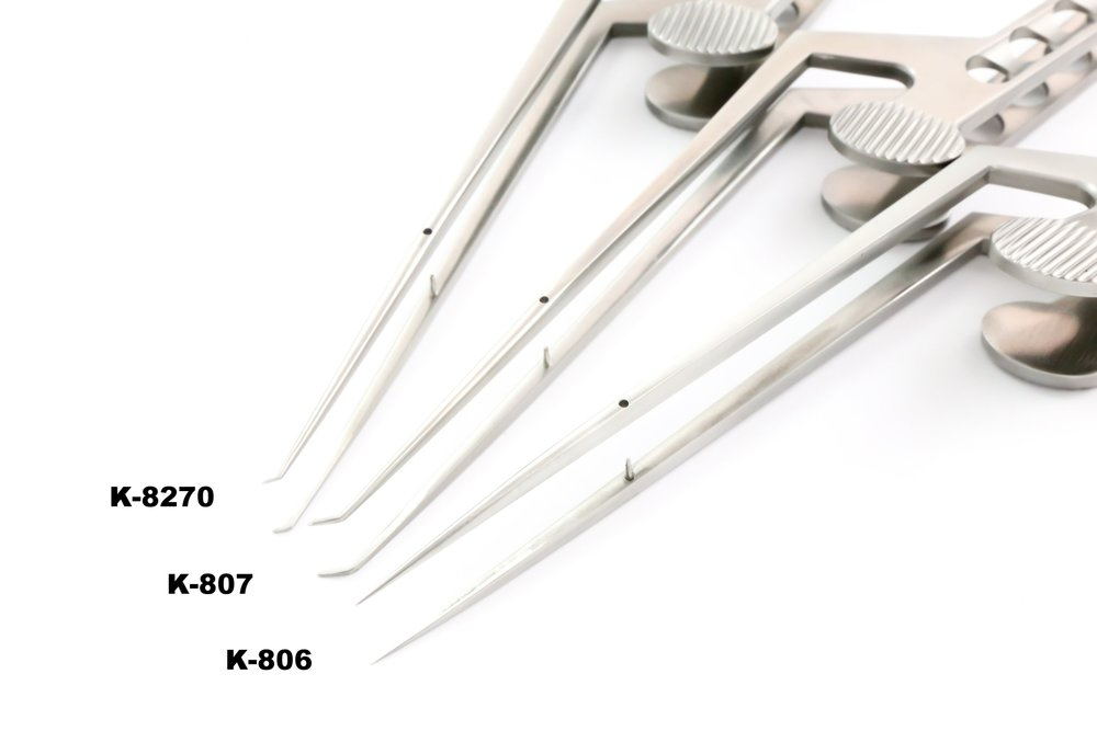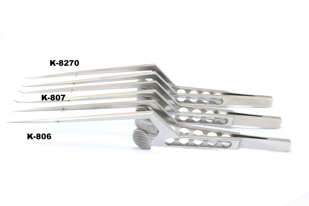 Пинцет микрохирургический Kamiyama, длина 200мм, робочая длина 90мм, К-байонетный, кончики 3,5мм изогнутые на 45° K-807