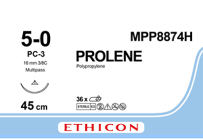 Пролен (Prolene) 5/0, длина 45см, реж. игла 16мм MPP8874H