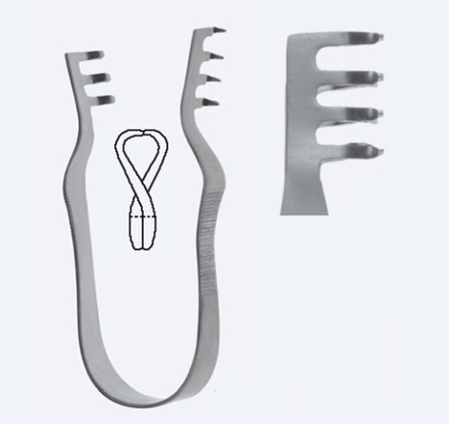 Ретрактор (ранорасширитель) раневой Finsen, длина 70мм, остроконечный, 3х4 зубчики WH5010