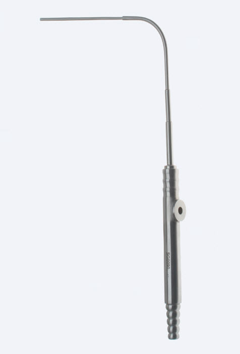 Трубка (аспиратор) отсасывающая хирургическая – инструмент, используемый во многих областях медицины для аспирации и ирригации, начиная с диагностики и заканчивая хирургическими вмешательствами. Трубка используется вместе со специальным отсасывающим аппаратом, на который и крепится инструмент. Инструмент изготавливается из жестких и мягких материалов, в зависимости от области применения. Многие всасывающие трубки имеют тупые закругленные или выпуклые кончики, которые позволяют использовать их для манипуляции с тканями, а также для всасывания, и они сконструированы так, что рука хирурга удобно располагается на краю раны. Набор включает диапазон диаметров, необходимых для микрохирургии и макрохирургии, и различную длину, необходимую для поверхностных и глубоких внутричерепных и трансфеноидальных операций. Трубка (аспиратор) отсасывающая хирургическая используется в медицине для удаления лишних жидкостей с полости человеческого тела, например, удаление крови, гноя, прочего во время лапароскопических операций и открытых операциях.
