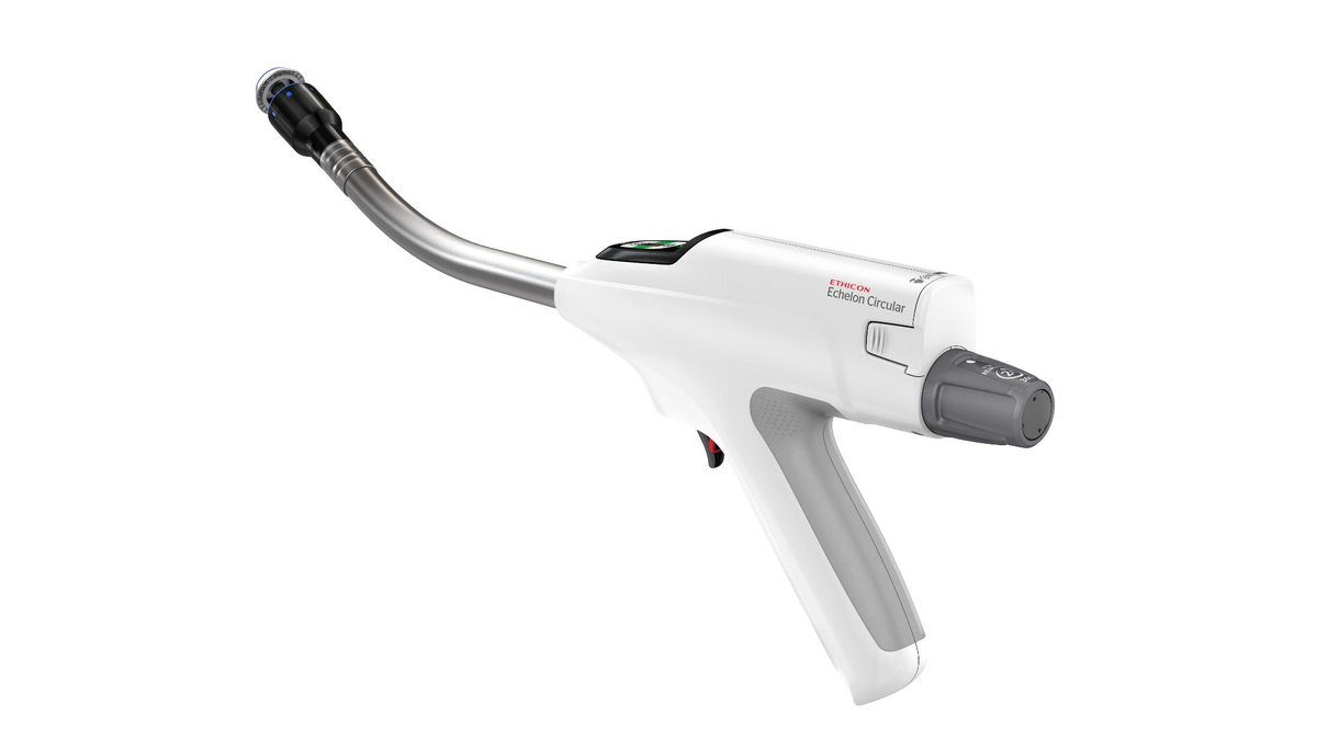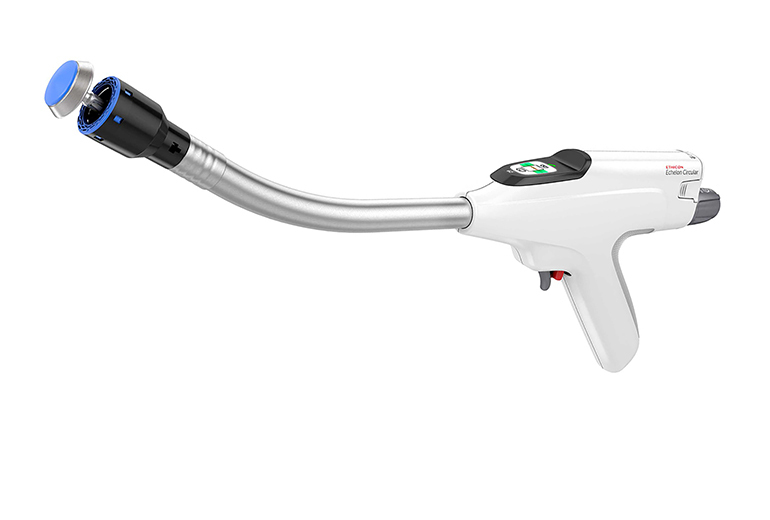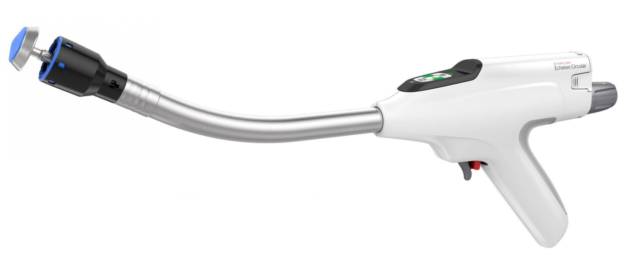 Зшиваючий циркулярний автоматичний апарат Echelon Powered (Ешелон) з дужками та регульованою висотою їх закриття та технологією рельєфної поверхні GST (спеціальна поверхня з високими кишенями). Довжина шафта - 24см; зовнішній діаметр тримача скоб - 29мм; діаметр головки - 20,4 мм. Виробник: ETHICON part of the JOHNSON&JOHNSON family of companies.