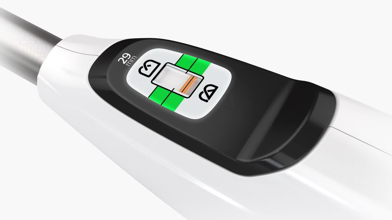 Наявність глибокого відсіку для резецованої тканини, інтегрованого в робочу частину троакара з помаранчевою маркерною смугою, шкали компресії тканини, що регулює рукоятки, важеля прошивання та запобіжника передчасної активації апарату. Шкала компресії добре візуалізована і має маркований діапазон коректного зведення браншів з маркерними смужками зазору, що відповідають висоті закриття дужок від 1,5 до 2,2 мм. Зовнішній діаметр утримувача скоб 29мм, діаметр ножа (робочої головки) 20,4мм. Довжина шафта 24 см. Наявність зеленого діапазону шкали компресії тканини, звукового та тактильного контролю прошивки. Рукоятка апарата має прогумоване протиковзне покриття, що сприяє більш надійному утримуванню апарата. Виріб забезпечує автоматичний, електричний процес накладання 2 рядів скоб для повного процесу створення анастомозу.