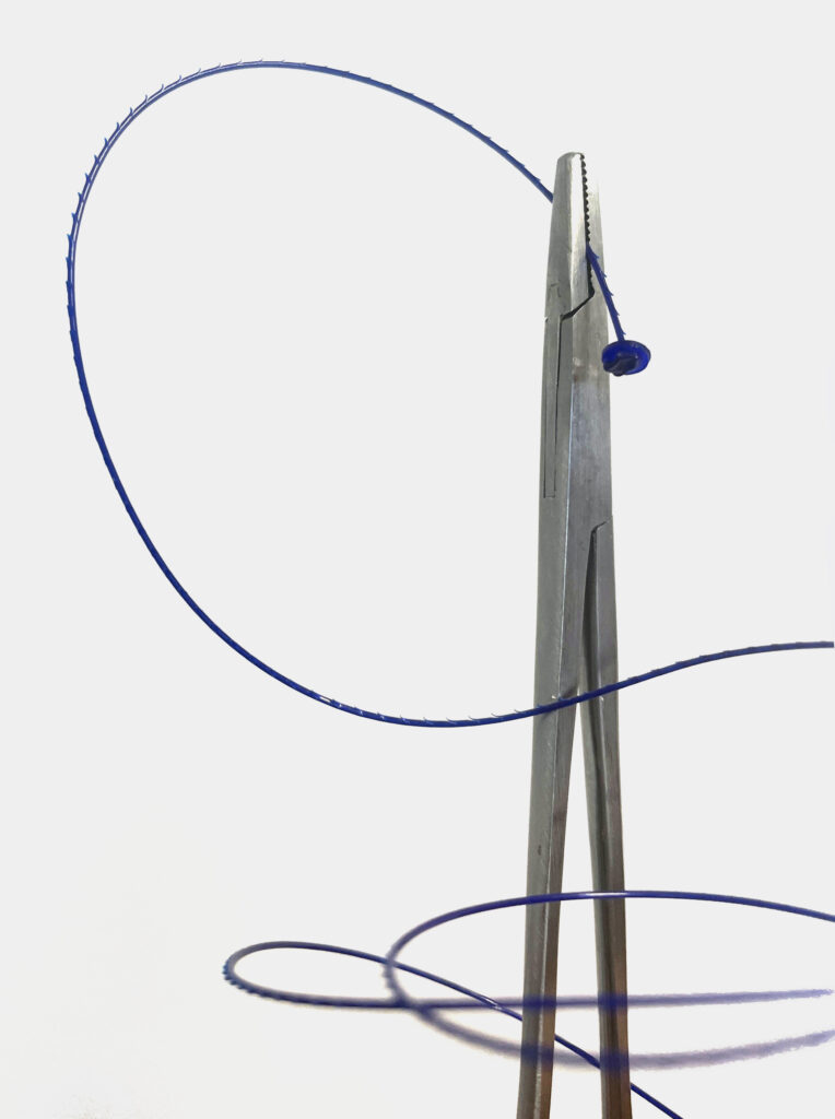 Шовний матеріал, що не розсмоктується Філблок Перманент (поліпропілен), USP 2/0, довжина 15см, монофіламентна нитка з насічками, самоблокуюча, колюча голка 26мм, 1/2 кола, синя нитка.