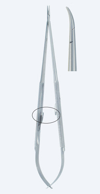 Голкотримач мікро Jacobson, довжина 250мм, вигнутий, з алмазним напиленням, кінчик 1,2мм, для ниток 5/0-7/0, без замка MN1339
