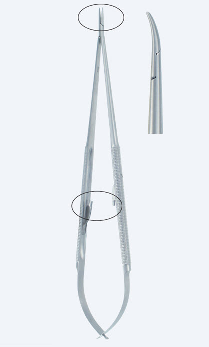 Голкотримач мікро Jacobson, довжина 230мм, вигнутий, з алмазним напиленням, кінчик 0,8мм, для ниток 7/0-8/0, із замком MN1353D