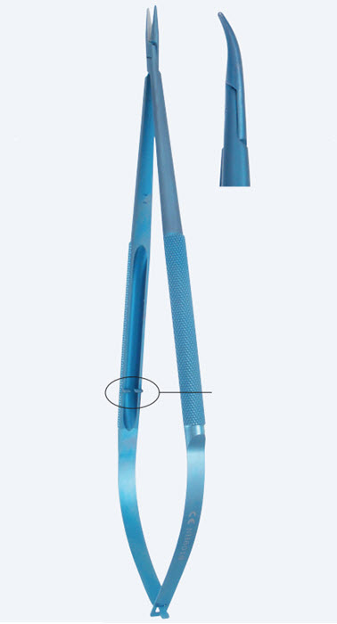 Голкотримач мікро титановий, довжина 235мм, вигнутий, робоча поверхня 11,0ммх0,4мм, для ниток 5/0-7/0, мультилок NH8019